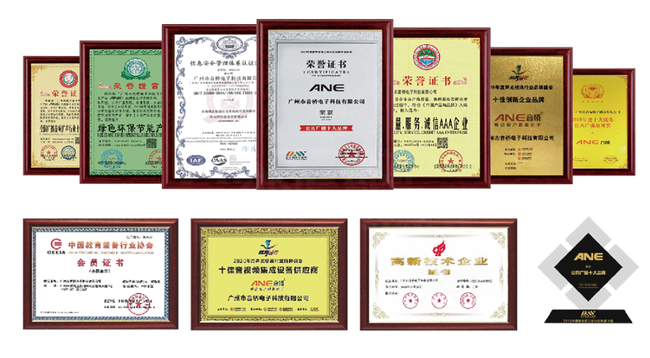 ANE音桥17年研发生产技术沉淀,公司拥有专业的研发部门,完善的生产管理系统、成熟多元的市场渠道,拥有600+软著和专利等知识产权,产品线丰富,为客户提供一站式采购服务。帮助客户超越对手是我们一贯的服务宗旨,相信在我们多年的技术与成功案例的积累下,定能为您带来满意的音视频一站式解决方案。