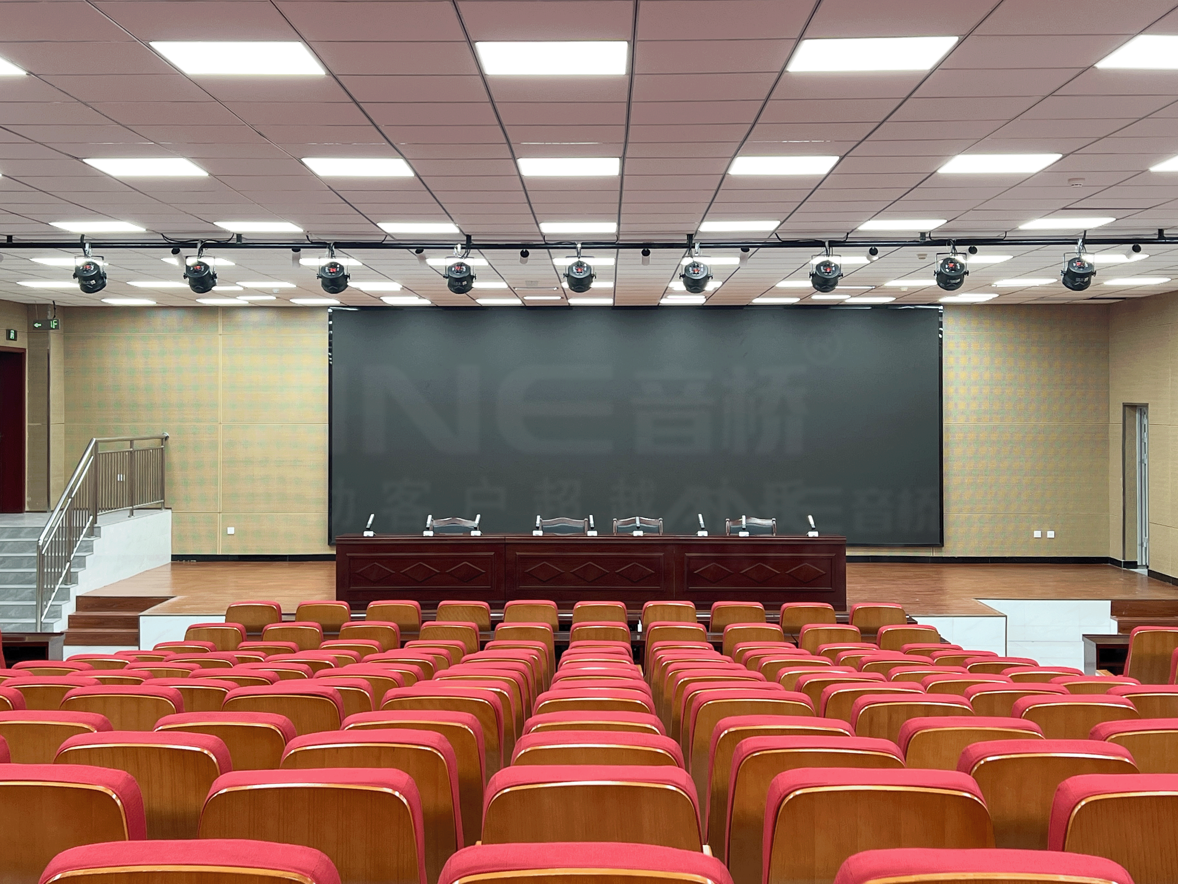 作为学校承办专家座谈、家长会及行政会议的重要空间,报告厅改造的重点在于提升语音清晰度、灯光适应性与系统操作便捷度,ANE为此构建了一套以中控矩阵系统为支撑的整体解决方案。