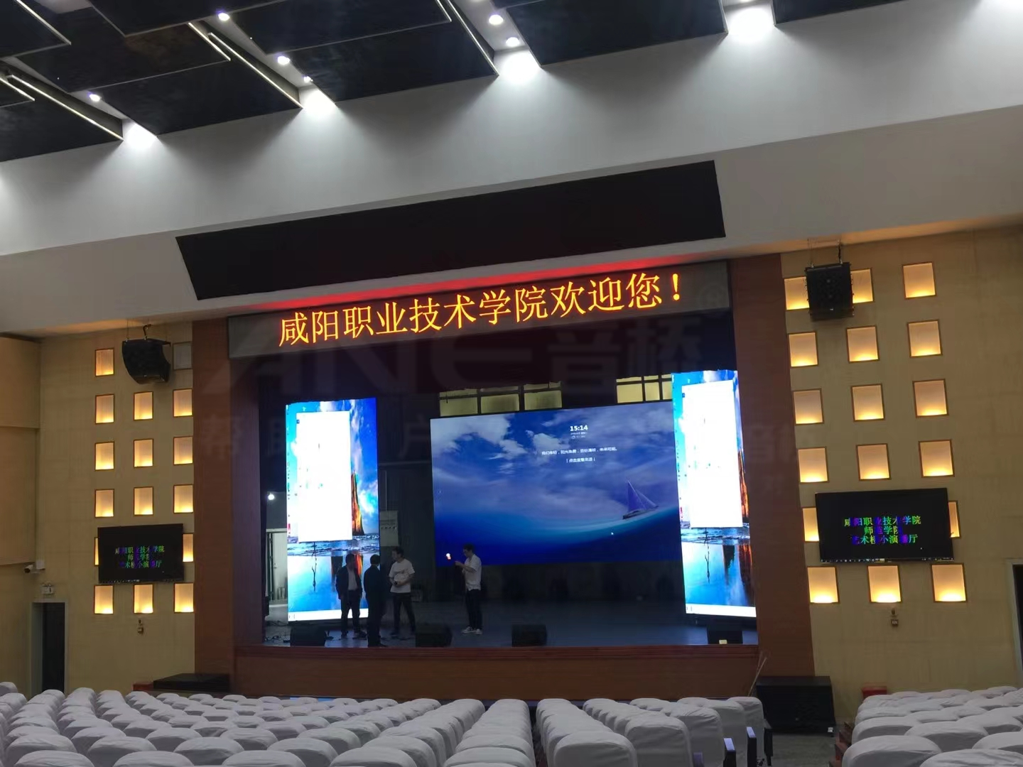 柱光安装在舞台假台口内侧,从台口内侧投光到表演区,又称内耳光,用来弥补面光、耳光的不足,一般设置小功率光束灯及柔光灯具。
