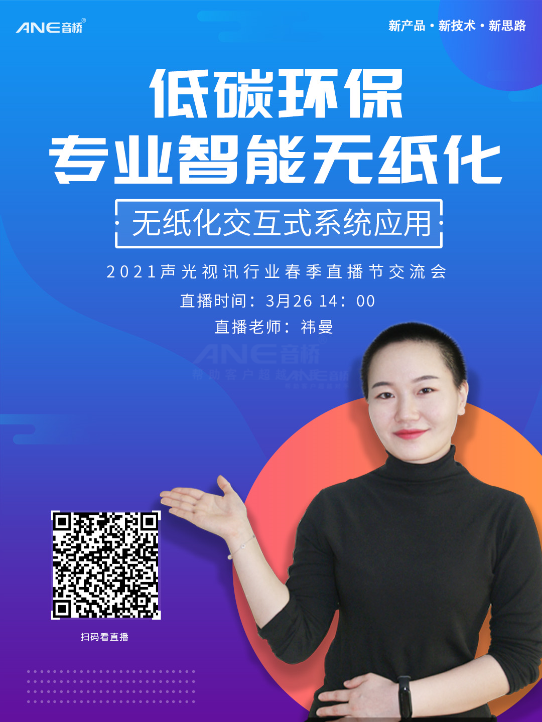 锁定3月26日14:00慧聪网——音桥直播间!带你深入了解ANE智能无纸化交互式系统应用,解锁高效便捷的数字化会议体验,让会议管理、会议后勤服务更简单、会议分享更丰富,让会议过程更高效便捷!