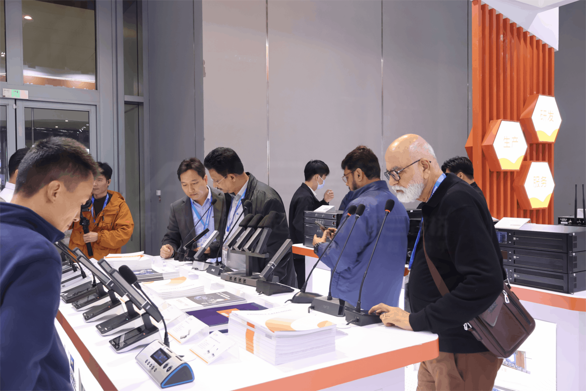 音频处理设备更是我们的技术核心展示,精准地调控音频信号的每一个细节,无论是消除回音、增强低音,还是实现多声道的精准同步,都能轻松应对,为各种音视应用场景提供最适配的音频支持。话筒作为声音的捕捉者,我们精心设计的多款话筒,以其出色的拾音效果舒适的握持感稳定的信号传输,赢得了现场专业人士的认可。
